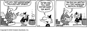 The study showed that if a specific drug was requested by a patient from an ad they saw, the doctor was twice as likely to prescribe it, even if it cost several times more than an equally effective drug.